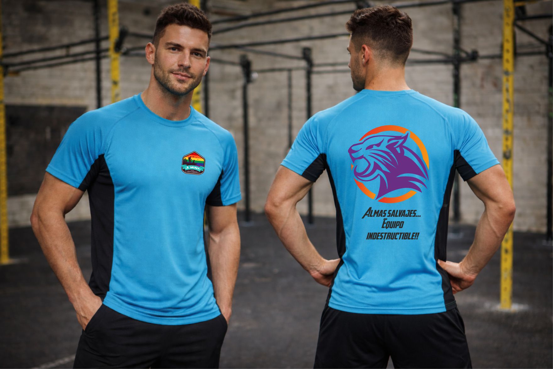 Camiseta técnica manga ranglán transpirable bicolor. Paneles laterales en tejido microperforado. Cuello redondo y cubrecosturas del mismo tejido al tono. (Ver guía de tallas en descripción)