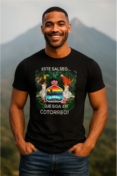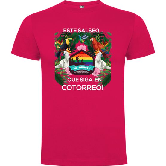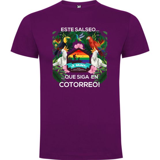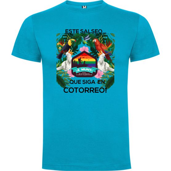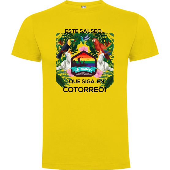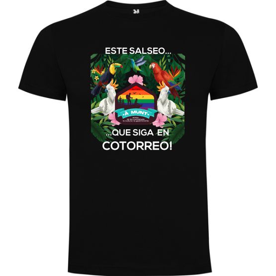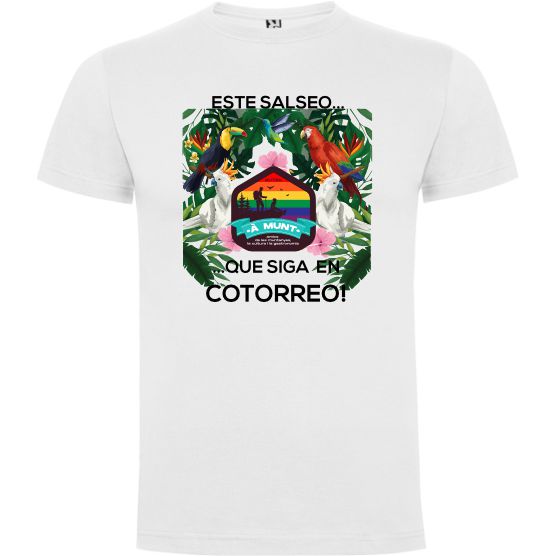 (Impuestos incluidos)Camiseta de manga corta con el lema SALSEO y COTORREO. Cuello redondo de 4 capas en canalé 1×1 con cubrecosturas de hombro a hombro. Costuras laterales (Ver guía de tallas en descripción)